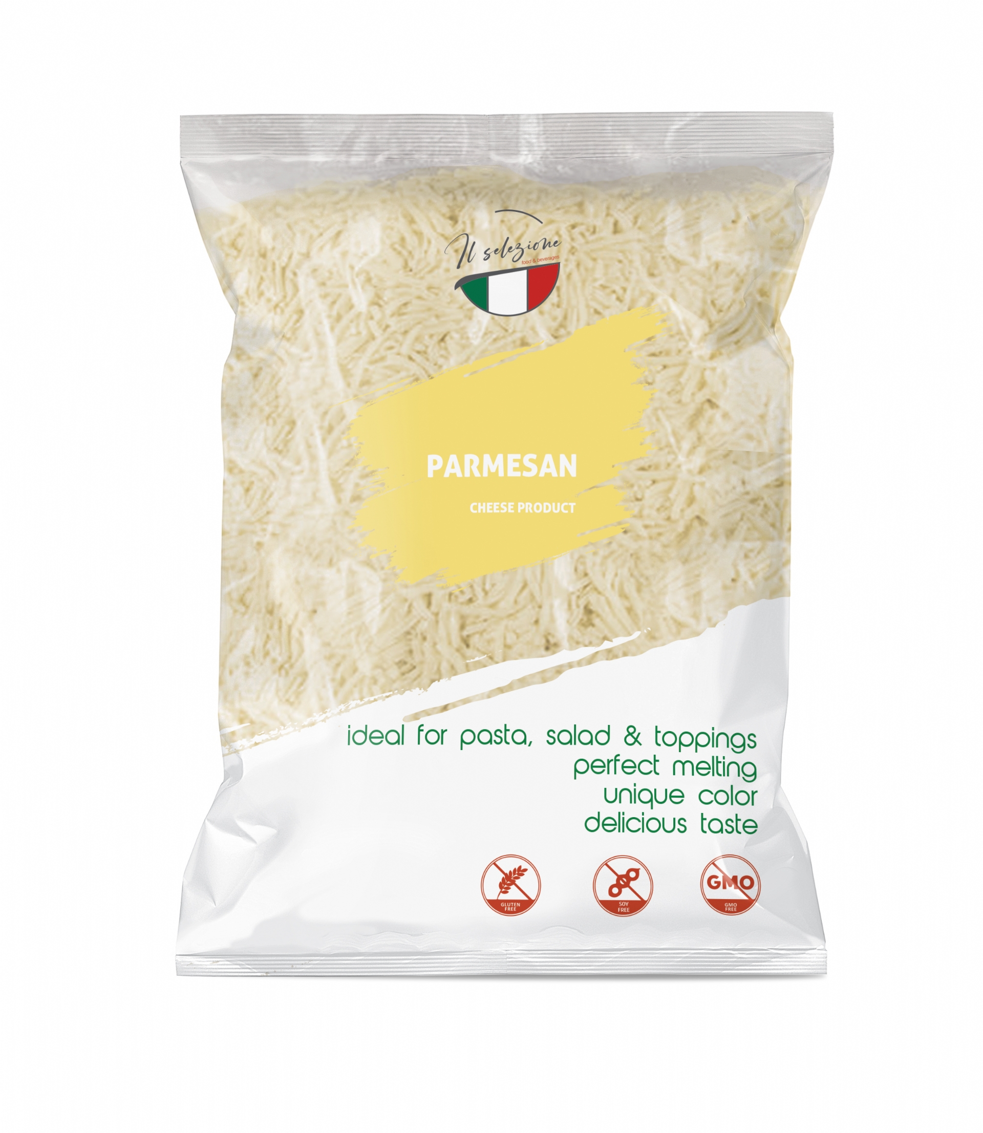 Delicious Shredded Analogue Parmesan Cheese made with %100 Milk and Vegetable Fat.