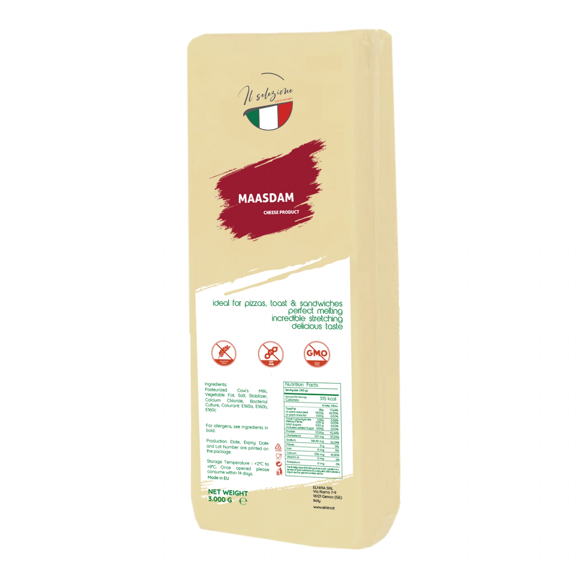 Beside the wide Packaging variety we are able to supply all our Block Analogue Maasdam Cheese with a long Shelf Life for our Retail, HoReCa, Wholesale and Industrial Customers.