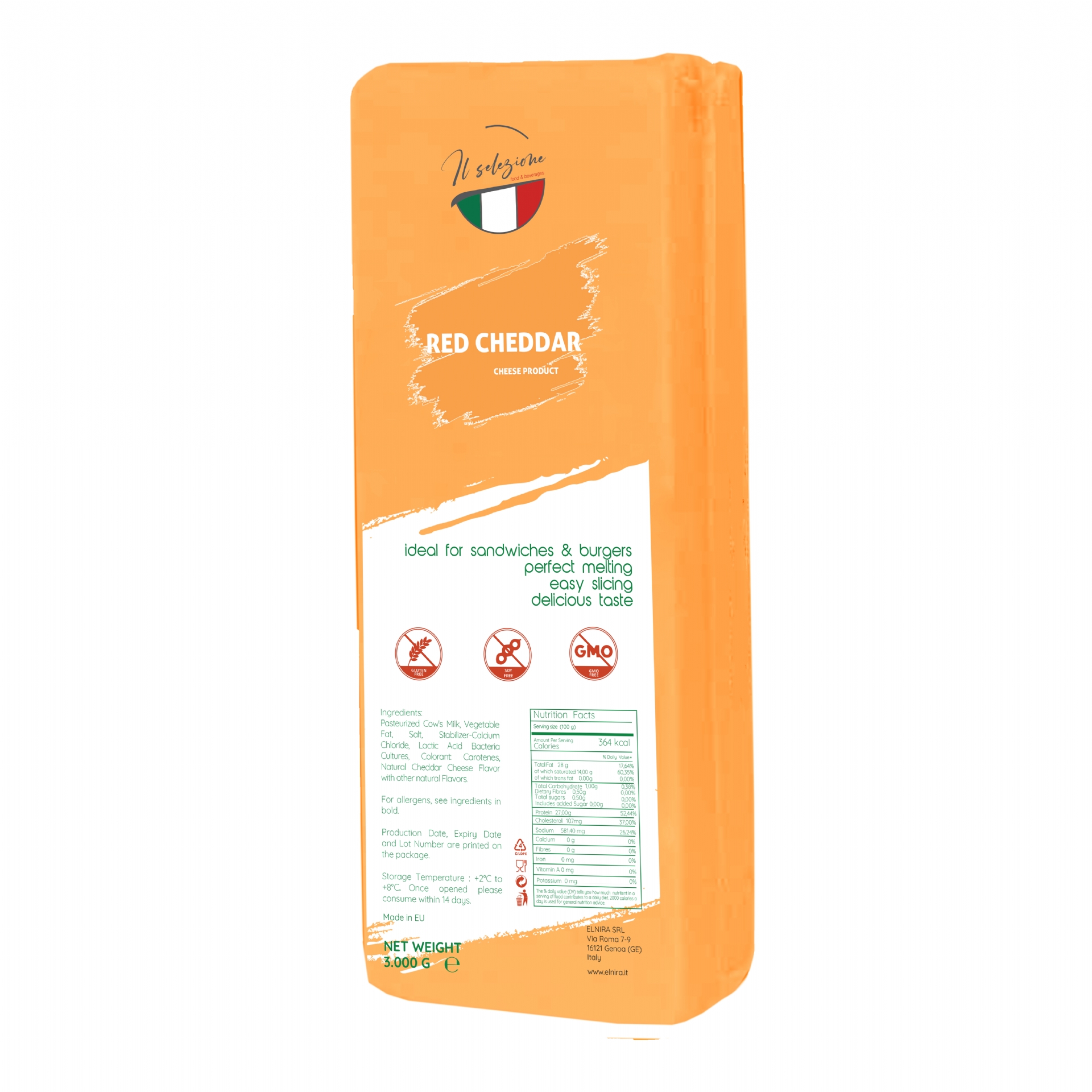 Delicious Block Analogue Red Cheddar Cheese made with %100 Milk and Vegetable Fat.