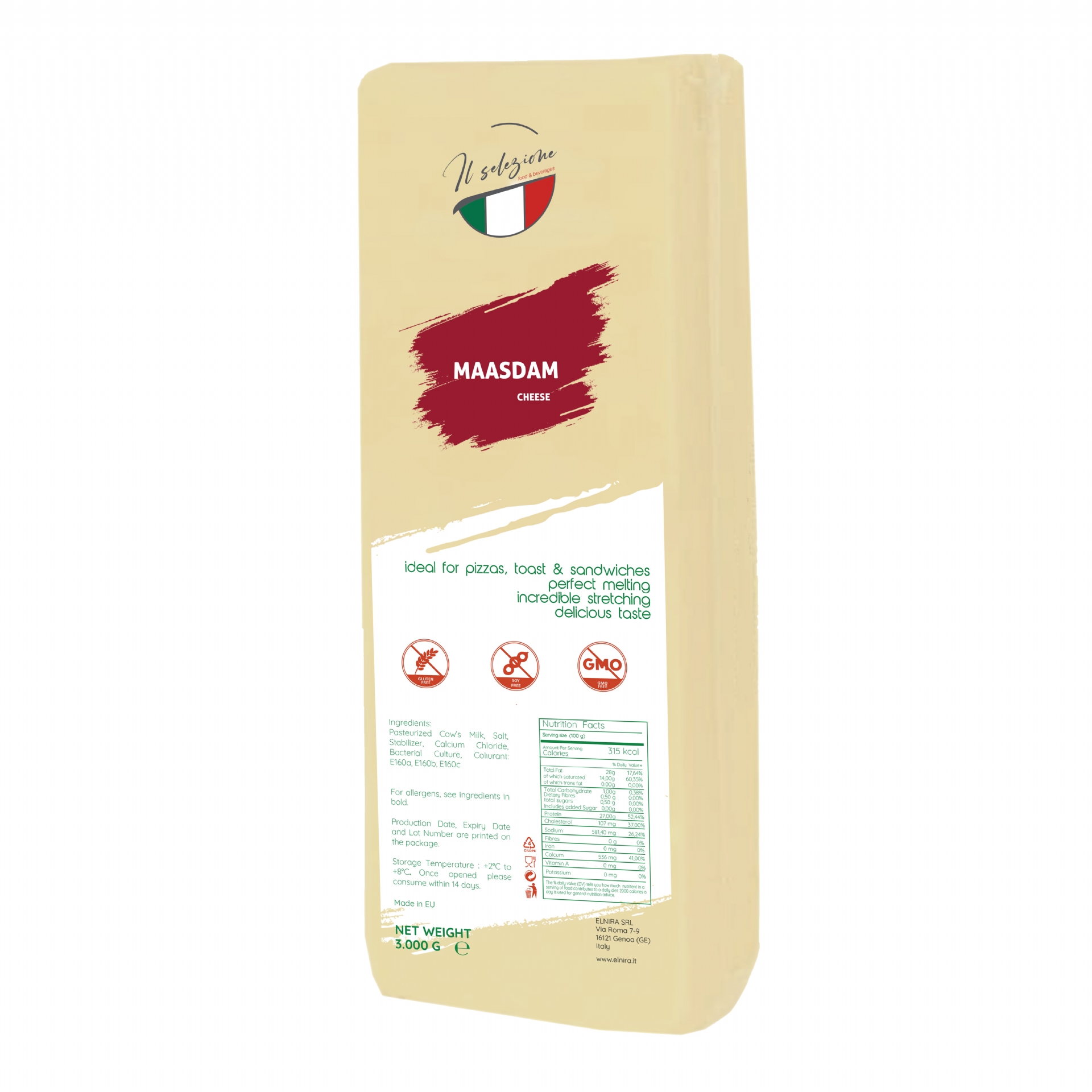 Beside the wide Packaging variety we are able to supply all our Block Maasdam Cheese with a long Shelf Life for our Retail, HoReCa, Wholesale and Industrial Customers.