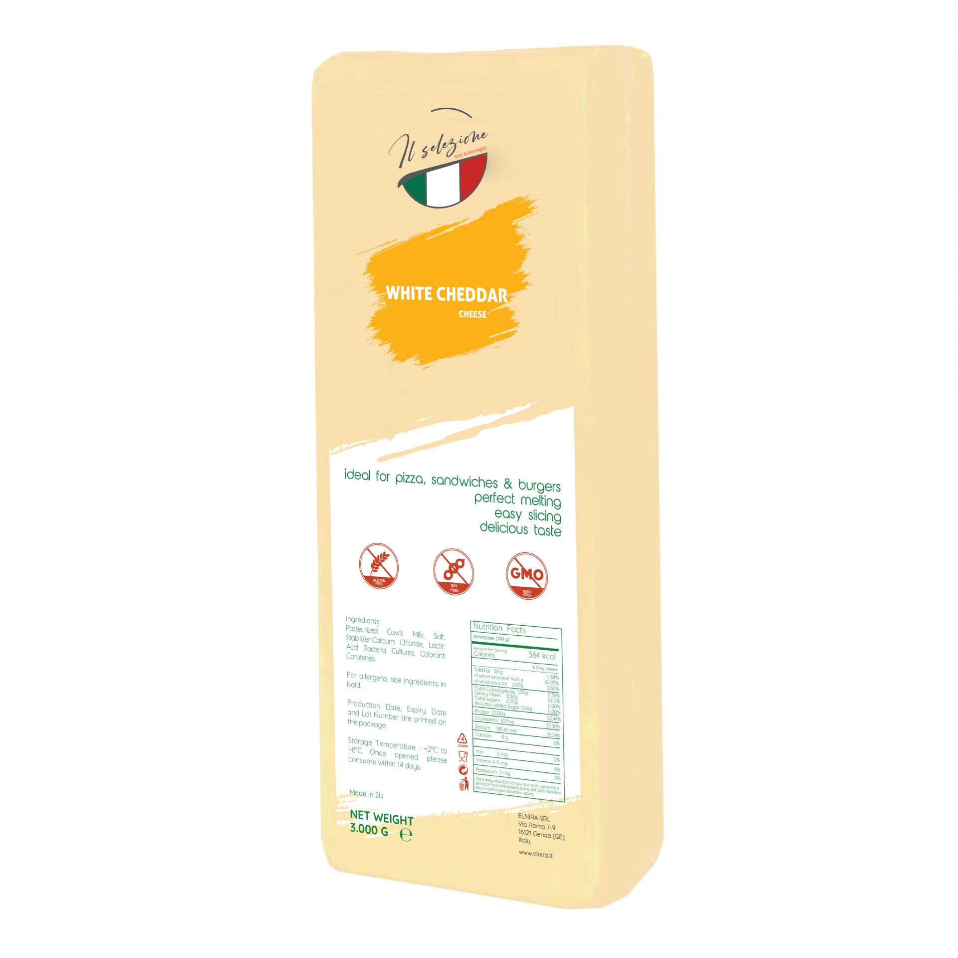 Beside the wide Packaging variety we are able to supply all our Block White Cheddar Cheese with a long Shelf Life for our Retail, HoReCa, Wholesale and Industrial Customers.