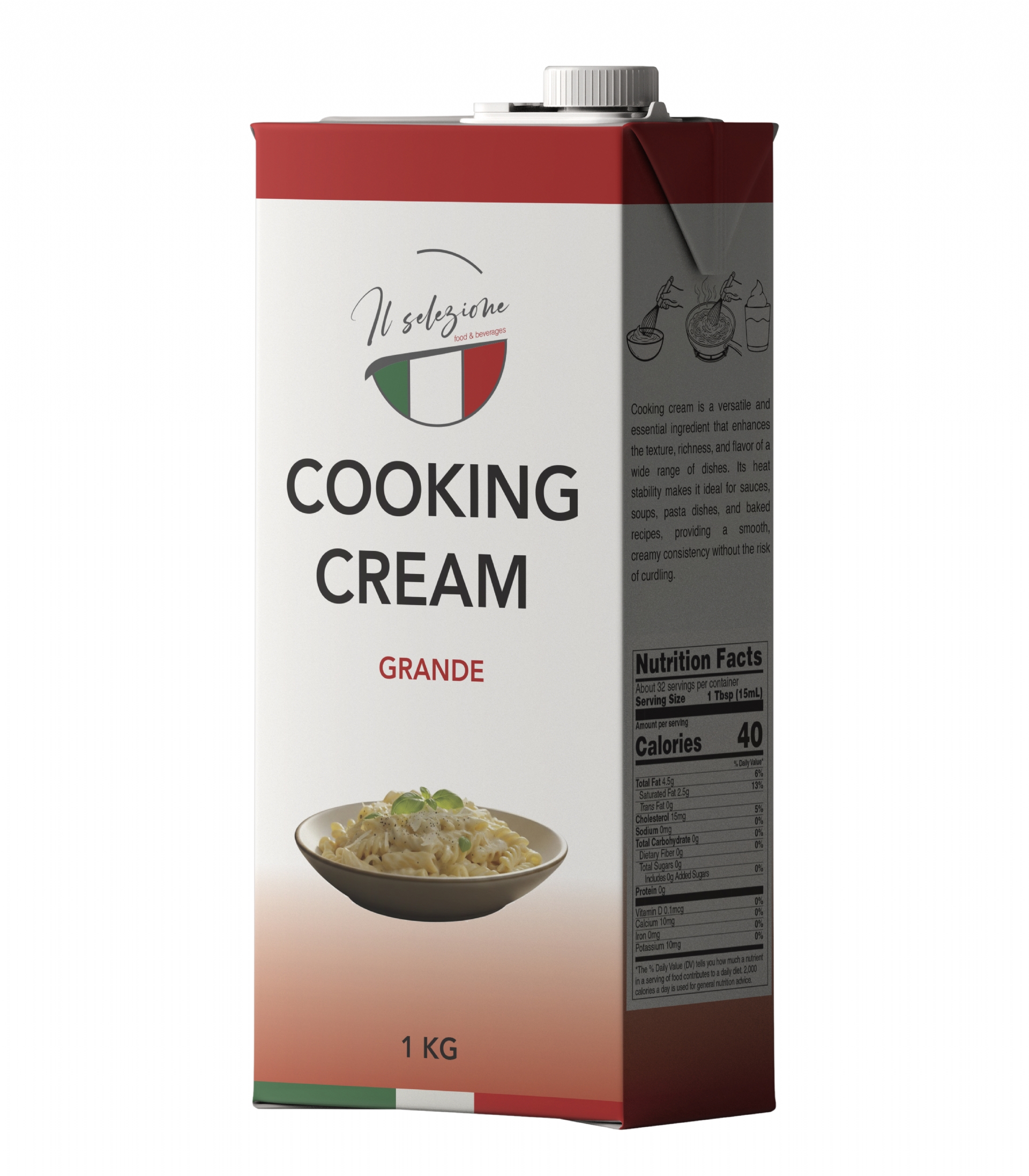Save time in the kitchen by preparing delicious homemade pasta in just a few minutes with our Cooking Cream Grande Product. Surprise your family not only with exotic Italian cuisine, but also by adding variety to your everyday menu—perfect for chicken dishes and many other recipes.