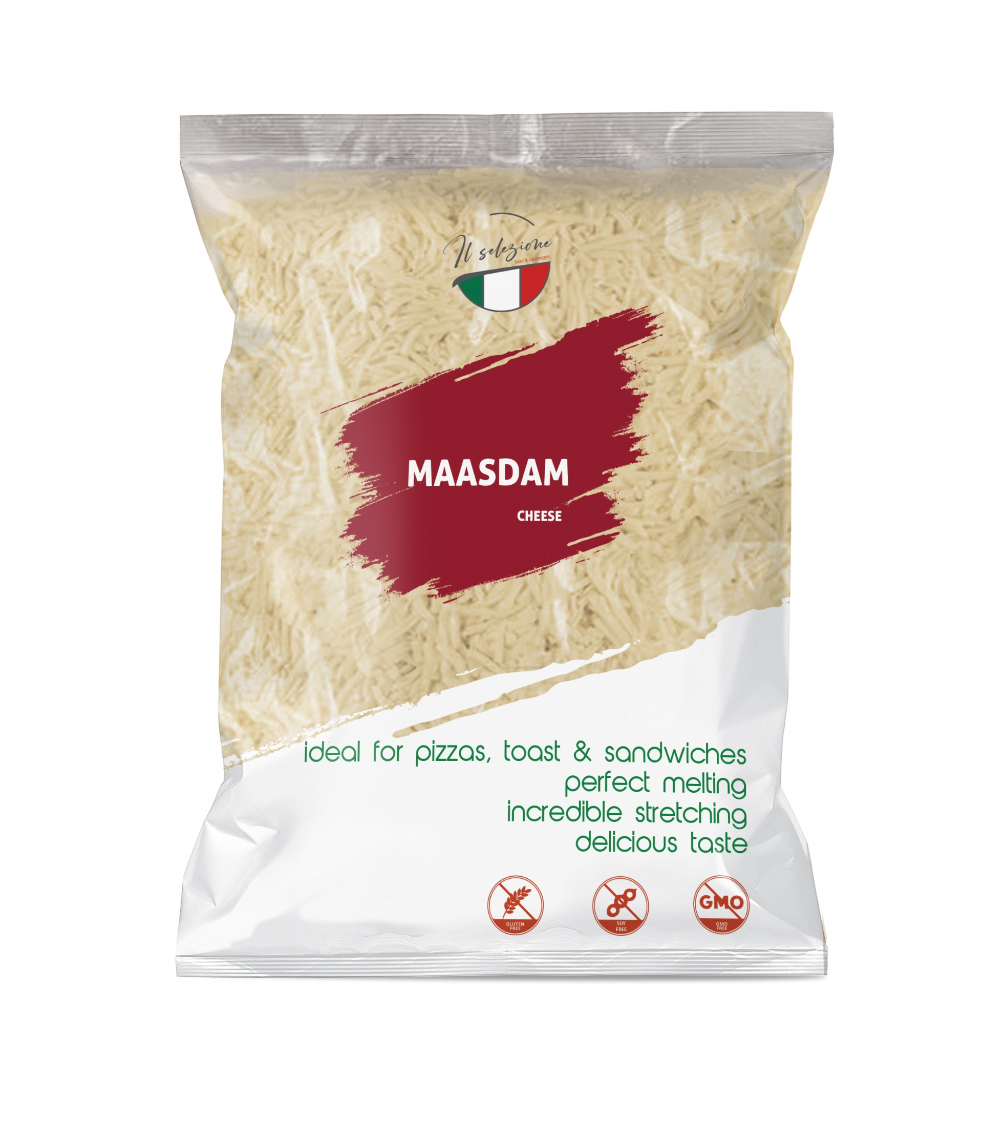 Beside the wide Packaging variety we are able to supply all our Shredded Maasdam Cheese with a long Shelf Life for our Retail, HoReCa, Wholesale and Industrial Customers.